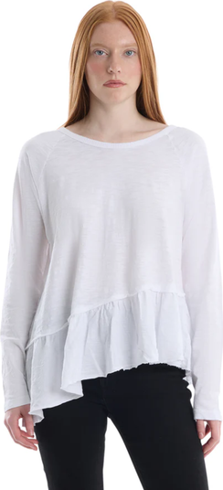 Raglan Long Sleeve Tee with Asymmetric Peplum Hem A fresh take on a wardrobe essential, this tee blends casual comfort with feminine flair. Designed in our signature slub fabrication, it’s the perfect balance of effortless and elevated. Raglan long sleeves for a relaxed fit and ease of movement Asymmetric peplum hem for a flattering, fashion-forward silhouette Crafted in our signature slub fabric for texture and softness Versatile piece—dress it up or keep it casual.