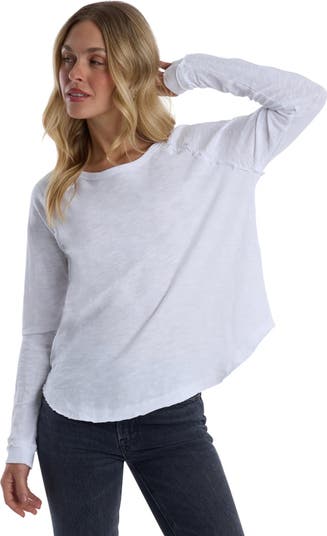 Raglan Long Sleeve Tee with Ruffle Detail A playful update to a timeless silhouette. Crafted in our signature slub fabrication, this 100% cotton tee features feminine ruffle accents for an effortlessly chic finish. Raglan sleeves with long length Delicate ruffle detail for added charm Soft, breathable slub fabrication 100% Cotton Imported Machine washable Model is wearing a size Small