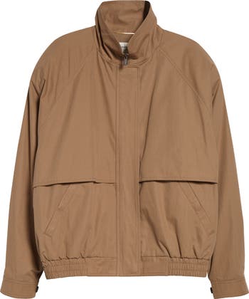 Fashion and function share top billing for this cotton-canvas jacket designed in a relaxed raglan-sleeve silhouette and symmetrically set with storm flaps and pockets.