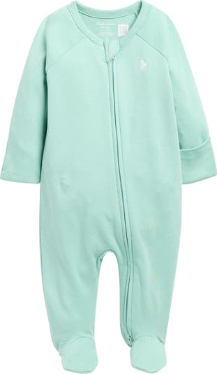 This all-cotton footie keeps baby feeling cozy as they giggle in this raglan-sleeve footie featuring a signature embroidered logo.