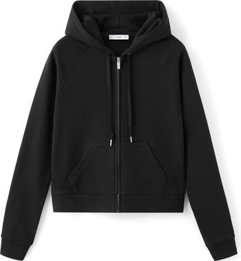 Comfortable raglan sleeves frame this slightly cropped hoodie made with a casual zippered placket and soft cotton.
