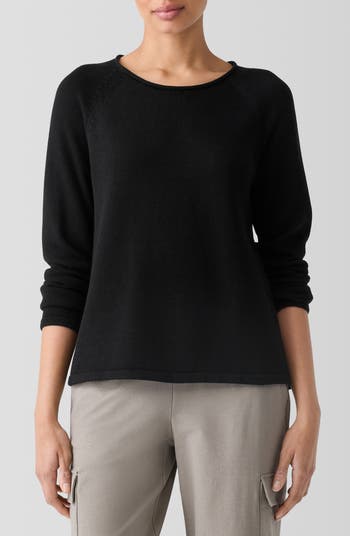 A relaxed fit furthers the cozy appeal of this classic crewneck sweater framed by raglan sleeves and crafted from an organic-cotton blend.