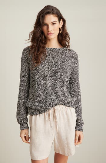 A blend of linen and cotton yarns enhances the softness and comfort of this marled crewneck sweater.