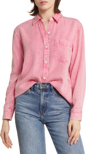 A '90s acid wash heralds a return to the trend in this breezy button-up shirt made from a lightweight blend of lyocell and linen.