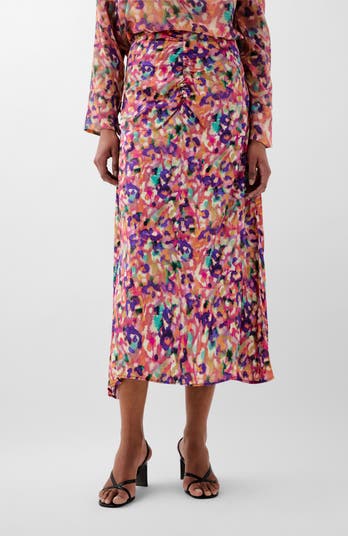 - Printed skirt. Gathering on the front. Side zip fastening in tone on tone.