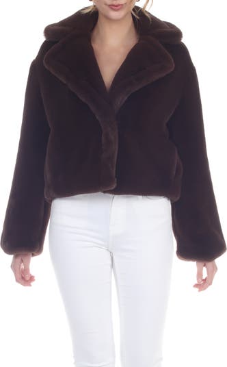 The cozy-chic trend gets taken to a luxe level in this faux-fur jacket that's cropped so you can easily layer with casual and dressier looks.
