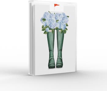 This 8-pack of greeting cards is elegantly illustrated by artist Ingrid Ramus, founder and owner of the Ramus & Co brand. Artwork features hydrangeas in rain boots. All greeting cards are made in the USA on heavyweight uncoated and locally-sourced and manufactured card stock. Each card is accompanied by a hand-embossed envelope made with heavyweight 95lb paper and a peel-and-stick flap - no licking envelopes here! All Ramus & Co. greeting cards are printed on FSC and SFI certified paper sourced from a regional mill that harnesses 66% of its energy from on-site sustainable sources, such as emission-free hydroelectricity and biomass co-generation from wood waste. All 8 greeting cards come packaged as a boxed set. Husband-and-wife team Calvin and Ingrid Ramus founded Ramus & Company in 2019, in New England, USA. Ingrid, the creative designer behind the brand, originates from Mexico, where she cultivated her skills in fashion and textile design. Drawing from her unique and inquisitive perspective on preppy style, Ingrid prolifically designs whimsical yet classic stationery and lifestyle items.