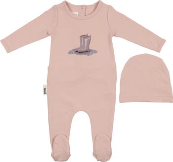 Whimsical graphics charm a cotton-rich footie framed with long sleeves and paired with a matching hat to give baby extra coverage.