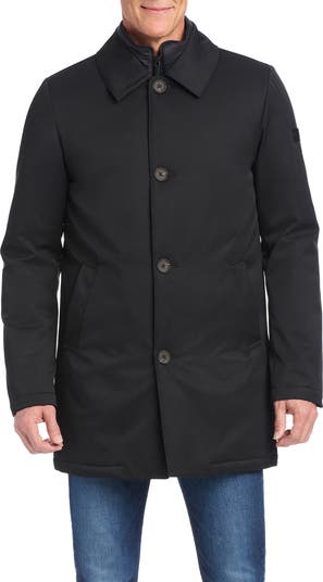 Versatile meets dynamic in this raincoat, where minimalist styling an a staid spread collar create a classic silhouette. A removable bib adds core warmth, while water-resistant construction ensures functionality for both unpredictable weather and unhurried strolls.