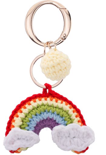 Add a personalized touch to your handbag with this whimsical charm hand-crocheted in a vibrant rainbow design that's sure to bring a charming look to your accessories.