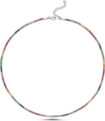 Dazzle them with this sparkly showstopper! Our Rainbow Colourful Sterling Silver Tennis Necklace is sure to turn heads no matter the occasion. With its high-shine sterling silver and vibrant rainbow of colors, you'll always be lookin' fresh! Length: 15,5 + 2,5 Inch Adjustable