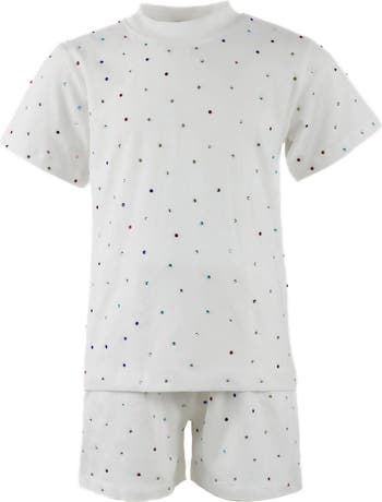 Add sparkle to summer days with the Rainbow Gem Short Set, available in soft pink or classic white, adorned with colorful gem accents. This matching set includes a relaxed-fit tee and comfy elastic-waist shorts, perfect for playdates, poolside fun or casual outings.