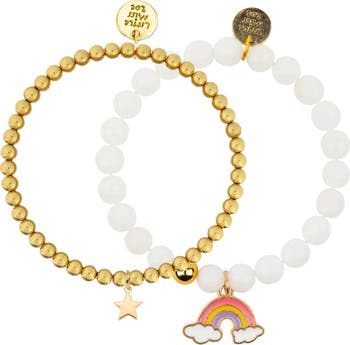 Let your wrist game shine with this little band of awesomeness. This semi-precious gemstone and gold-plated bracelet duo is the perfect way to show off some unique style and personality. Made with love in CA from super comfy materials, these children's bracelets are the ultimate accessory for school, playdates, and everything in between. Each kid's bracelet is delicately designed to be mixed, matched, and stacked for endless accessorizing. This item comes pre-packed on a card perfect for gifting.