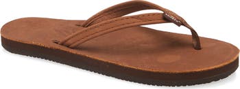 A casual flip-flop features layers of sponge memory rubber that mold to your feet for absolute comfort. The leather upper is stitched with an ultra-durable nylon thread for long-lasting wear.