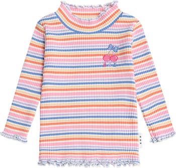 A versatile layering piece in all the colours of the rainbow. This long-sleeved top is made from extra thick ribbed cotton to keep little bodies warm and features a sweet lettuce edge detail to complete the look.
