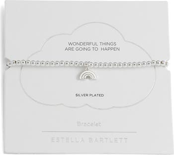 This beaded stretch bracelet anchored with a dainty rainbow charm serves as a reminder of good things up ahead.