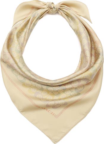 Wrap yourself in COACH heritage with this fluid silk-twill scarf featuring signature 'C’s' stacked in a pretty rainbow pattern.