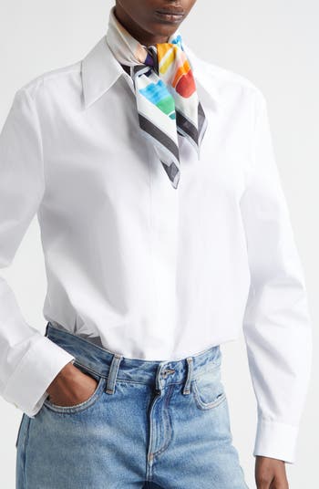 Make a gallery-worthy statement in this lightweight Italian-cotton scarf, where painterly stripes are arranged in a deconstructed rainbow framed in an elegant solid border.