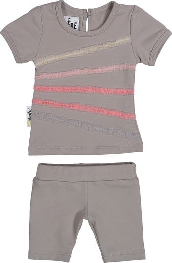 Rainbow-hued tulle ruffles streak color across the top of this stretchy cotton set made just for baby with matching solid shorts to complete the look.