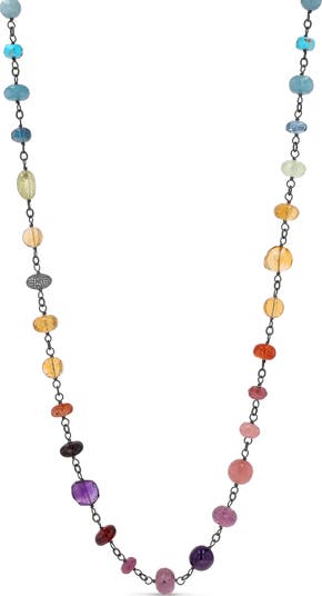 - Sterling Silver - Diamond carat weight is approximately 1.25 - Mixed Size Faceted Rondelle Beads. Rainbow Mix including Lavender Amethyst, Natural Turquoise, Grandidierite, Citrine, Carnelian, Garnet, Prehnite, Paraiba Blue Quartz, Guava quartz - Wipe Clean
