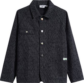 Triple-stitched seams and plentiful pockets enhance the durable, utilitarian style of this button-front jacket made from sturdy cotton drill and covered in a distinctive raindrop pattern.