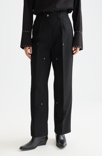 These full-length wide-leg pants feature just enough stretch, silvery studs and neat pleats for a trend-right detail.