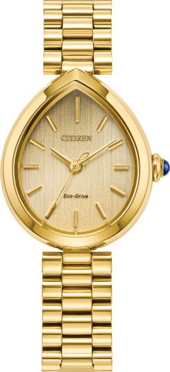 As creative and elegant as its wearer, this stainless steel bracelet watch features a teardrop-shaped case that turns a timepiece into a sculpture.