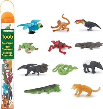 This TOOB set includes 11 mini figures of rainforest animals to help kids learn and grow while they play.