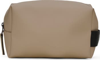 This minimalist toiletry bag crafted from signature waterproof fabric features a single compartment interior designed to hold your necessities.