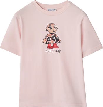 A crew-neck T-shirt in cotton jersey, printed with our logo and Thomas Bear dressed in Burberry Check rainwear. ||Rib-knit neckline|Printed Burberry lettering