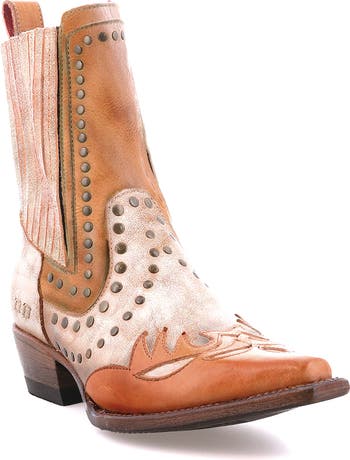 Raise is a playful twist on a classic Western-inspired boot. With its vibrant color combinations, studded accents, and signature Western stitching, this short boot is all about making a statement. The snip toe adds a touch of traditional flair, while the hidden stretch goring ensures easy on-and-off for effortless everyday wear - combining modern style and functionality with tried-and-true Western construction.