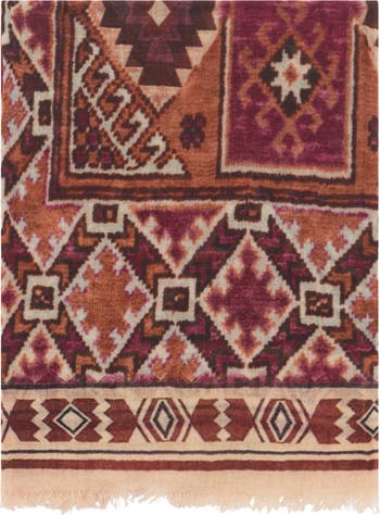 The Raissa wool scarf features a striking and colorful geometric print reminiscent of Inca patterns. Wrap yourself in this warm and cozy scarf, that enriches day to night ensembles.
