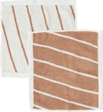 The Raita series is an elegant and beautiful collection of towels and wash towels in organic cotton terry. The series is characterized by its striped design that will surely adorn your bathroom. The name is not random as Raita means stripes in Finnish. The beautiful Raita Wash Towels in Cloud and Caramel come in a set of two. We recommend soaking the washcloths in cold water overnight before the first wash. This improves the ability to absorb water. Machine wash at 60°
