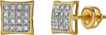 These 0.05 carat diamond earrings showcase a petite cluster design set in 10K yellow gold. The diamonds are precisely placed to deliver a soft natural shimmer that adds just the right amount of elegance. A secure screwback setting provides lasting comfort and everyday wearability. With their classic style and delicate sparkle these earrings are a graceful staple for any jewelry lover.