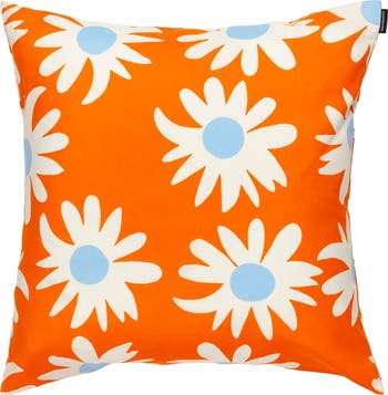 Rakastaa, ei rakasta (loves me, loves me not) designed by Maija Isola in 1972 is a cheerful, playful floral pattern that calls to mind relaxing on a warm day on this cotton pillow cover.