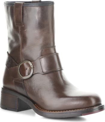 A decorative buckle enhances the equestrian vibe of this soft leather pull-on boot boasting comfortable cushioning and a low stacked heel.