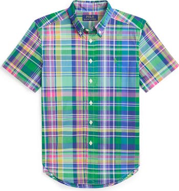 Cool cotton poplin woven in a colorful plaid keeps your young prepster looking smart and staying comfortable in a shirt that looks great whether it's worn tucked or untucked.