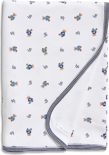 A soft cotton receiving blanket perfect for keeping your little one snug and warm switches from solid to a cuddly teddy bear print.
