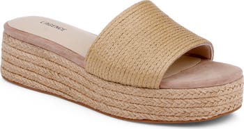 Finely woven raffia brings a boho-cool aesthetic to an espadrille-inspired slide sandal lofted by a jute-wrapped platform and integrated wedge heel. Memory foam cushioning delivers optimal underfoot comfort.
