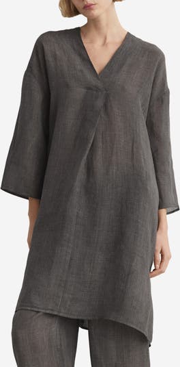 A surplice neckline adds soft structure to this relaxed caftan cut from lightweight fabric and framed by billowy long sleeves.
