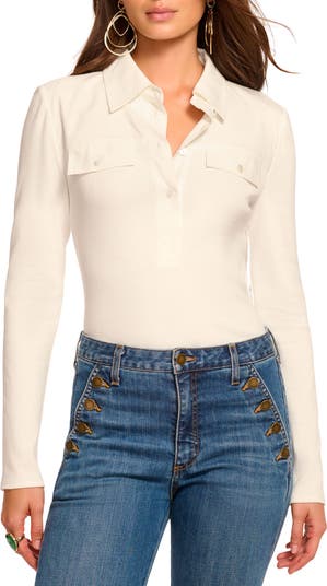Soften your silhouette with this fitted polo made from a lightweight cotton blend in a ribbed pattern and styled with long sleeves to complete the streamlined look.