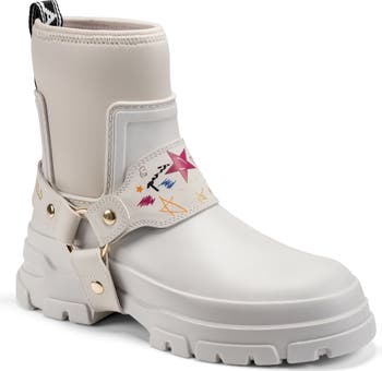 Rainy days won't interfere with you acing your OOTD in this harness rain boot grounded by a grippy lug sole.