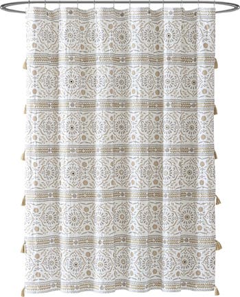 Bring a touch of global design to your bathroom decor with this shower curtain in a pattern that embodies the artisty of textiles found around the world.