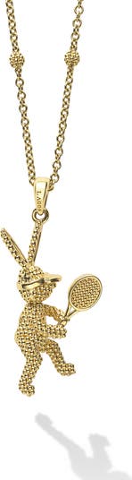 An 18-karat gold tennis bunny pendant with signature Caviar beading brings a sense of playfulness to this polished chain necklace.