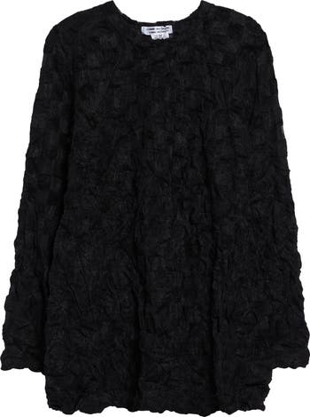 Rei Kawakubo doubles down on deconstruction in this lightweight raschel-knit top with rumpled, prepilled sections reminiscent of torn lace.