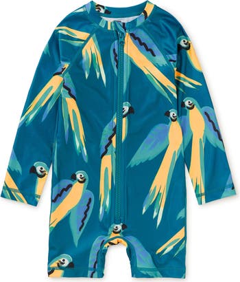 They'll look amazing in our nature-inspired Rash Guard Baby Swimsuit, designed for style, comfort, and sun safety. With built-in UPF 50+ protection, this one-piece swimsuit features thoughtful details like a zipper closure with an interior guard and zipper garage to prevent pinching. The fitted design includes long raglan sleeves, a lined front panel and gusset, and just the right amount of stretch thanks to the polyester-spandex blend. Perfect for pool, beach, and year-round swim lessons! For lasting quality, hand wash and lay flat to dry.