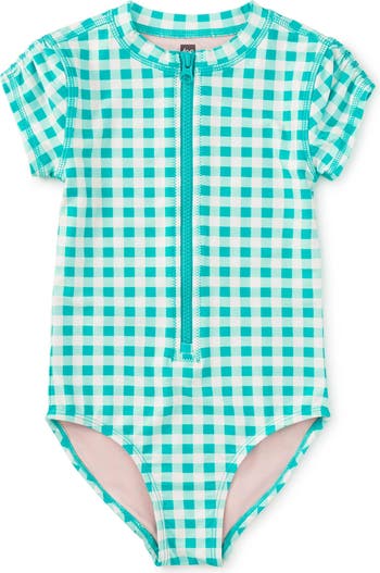 Designed for sunny days and carefree water play, this Rash Guard One-Piece Swimsuit blends comfort, coverage, and long-lasting quality in an easy, streamlined silhouette. Featuring an artist-designed print created in-house, it brings a playful, imaginative feel to every swim day. Thoughtfully made with UPF 50+ sun protection and crafted from recycled materials, it's built to last splash after splash. A fitted shape, cap sleeves, and a zipper closure with an interior guard help keep kids comfortable and protected for long days in and out of the water. Be sure to follow our care instructions to help keep it looking its best swim after swim.