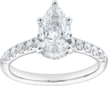 Rasha 14K White Gold Pear Lab Grown Diamond Hidden Halo Engagement Ring - 2 Ct