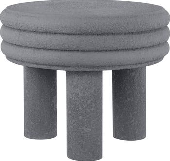 Rashida Modern Round Polyresin Indoor/Outdoor Low Accent Coffee Table, Chunky Ribbed Tripod Base, All-Weather