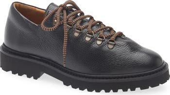 Inspired by classic hiking boots, this lookbook-featured oxford refines utilitarian codes into a cleaner, more deliberate shape. The signature one-piece fold reads almost like leather origami, anchored by classic hiking laces and striking metal eyelets that add just the right flash. Underfoot, a durable lug sole brings traction that keeps the look grounded and ready.